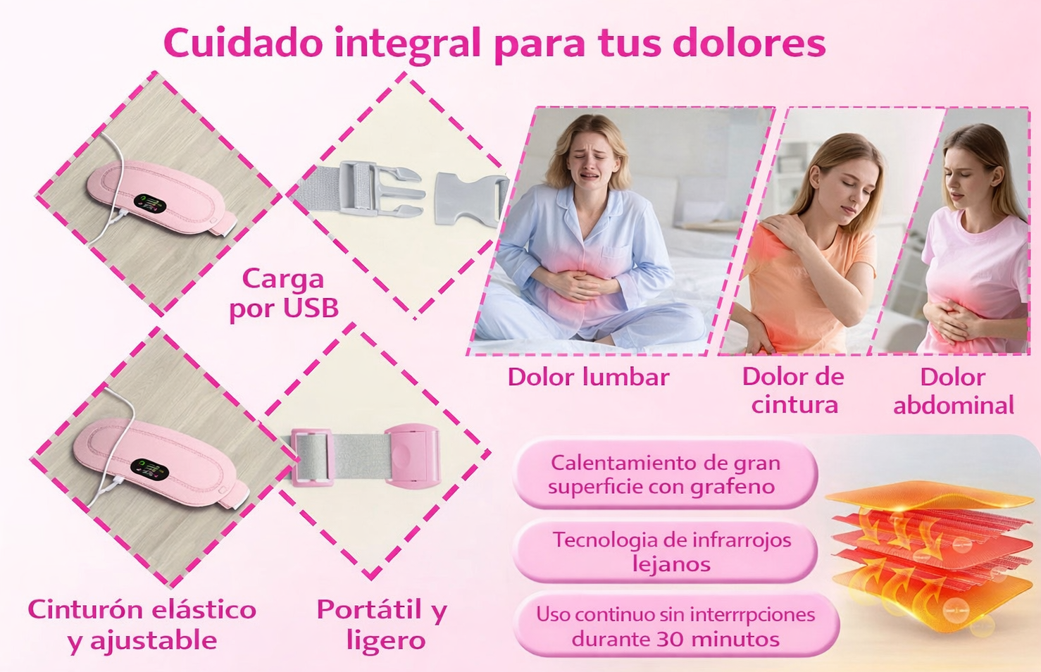 El calor terapéutico actúa directamente sobre la zona abdominal para reducir los cólicos menstruales y devolverte el confort que necesitas. Sin medicamentos, sin interrupciones, solo alivio natural cuando más lo necesitas.